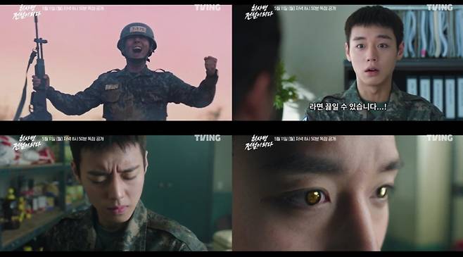 5월 11일 공개를 앞둔 티빙 오리지널 '취사병 전설이 되다'는 총 대신 식칼을, 탄띠 대신 앞치마를 두른 이등병 강성재가 ‘전설의 취사병’으로 거듭나는 과정을 그린 밀리터리 쿡방 판타지 드라마다.