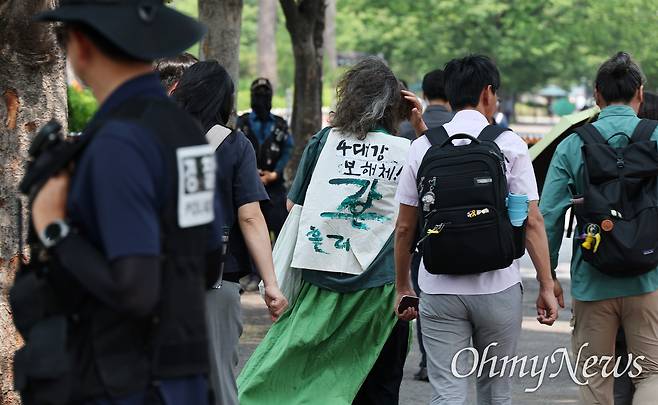 | ▲ 4대강 재자연화 정책 조속 추진 촉구 보철거를위한금강낙동강영산강시민행동 주최로 지난 2025년 6월 17일 오후 서울 용산구 대통령실 앞에서 열린 '4대강 재자연화 정책 조속 추진 촉구 기자회견'에서 참석자들이 "윤석열 정부가 추진한 세종보 재가동 백지화 및 금강 영산강의 보 처리방안을 원상회복하고 이행할 것"을 촉구하고 있다. |