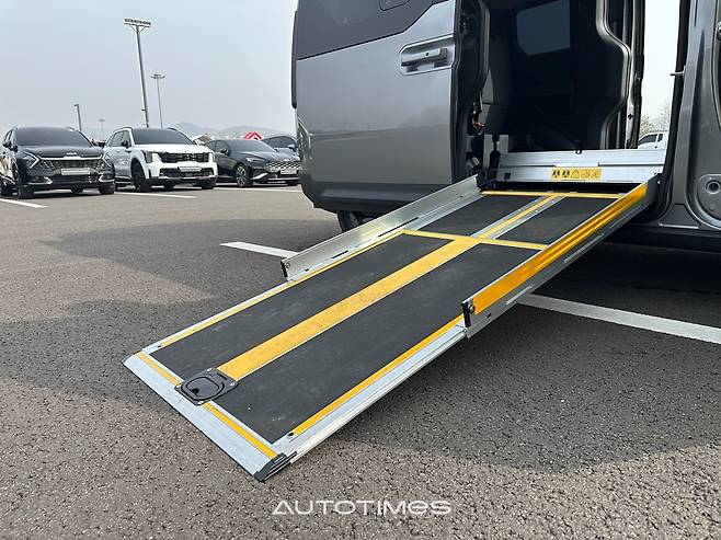 본질은 측면에서 드러난다. 775㎜에 달하는 슬라이딩 도어 개구폭과 저상 플로어, 그리고 인플로어 방식 슬로프가 핵심이다. 기존 휠체어 특장차가 후면으로 탑승해야 했던 것과 달리 PV5 WAV는 인도에서 바로 진입이 가능하다. 차도로 내려가지 않아도 된다는 점은 단순한 편의가 아니라 안전과 직결된 변화다.