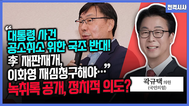 [전격시사] 곽규택 국민의힘 의원 - “대통령 사건 공소취소 위한 국조 반대! 李 재판재개, 이화영 재심청구해야…녹취록 공개, 정치적 의도?”
