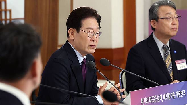 이재명 대통령은 오늘(9일) 현재의 국제정세와 관련해 "단기적으로는 중동 전쟁이 우리 경제에 상당히 큰 위협을 가하고 있고, 장기적으로 보면 대한민국 경제 체제가 근본적으로 변화해야 할 시점"이라고 말했습니다.