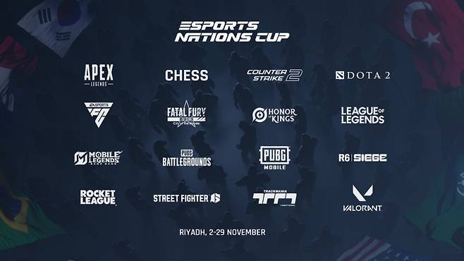 (엑스포츠뉴스 유희은 기자) e스포츠 재단(The Esports Foundation, 이하 EF)은 올해 11월 2일부터 29일까지 사우디아라비아 리야드에서 열리는 ‘e스포츠 네이션스 컵 2026(Esports Nations Cup 2026, 이하 ENC 2026)’의 공식 경기 종목 16개를 확정했다고 밝혔다.