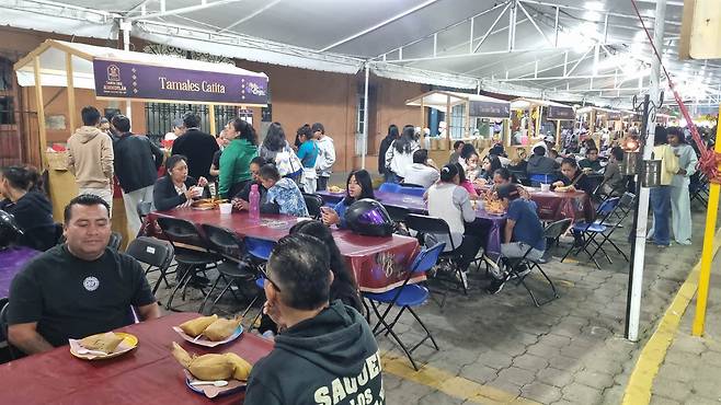| ▲ 이 축제에서 주가 되는 음식은 전통적인 타말레(tamales)와 아톨레(atole)이다. 성당 건축 노동을 돕던 여성들이 밤에 남편들에게 가져다주던 음식이었다. |