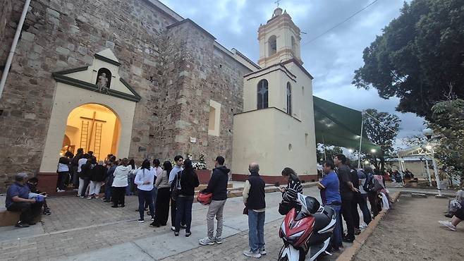 | ▲ 원주민들의 노동과 헌신으로 세워진 성당. 성주간의 미사로 가득 찼다. 영성체를 받기 위해 성당 안팎으로 신자들의 줄이 길게 이어졌다. |