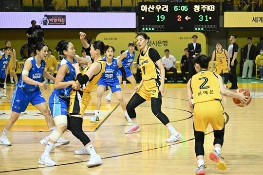 우리은행은 KB와 간격을 어떻게든 좁혀야 했다. 그러나 박지수를 막는 건 어려웠다. 전투력을 장착한 박지수는 더 그랬다.