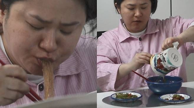 김신영은 아침에 일어나면 “입맛이 제일 돌 때가 아침이에요.”라는 말과 함께 아침 준비를 시작한다. 밥솥에 밥을 하고 냉장고에 있는 재료로 금세 식탁을 준비하는 능력을 보여주고, "아침이 행복하려면 저녁이 피곤해야 해요."라는 자취 베테랑으로서의 한 마디도 전한다. 그 중 밥솥 앞에서 망부석처럼 있는 모습이 포착되어 시청자들의 관심을 사로잡고 있다. 증기가 뿜어져 나오는 밥솥을 하염없이 바라보는 그의 모습은 극한의 배고픔을 드러내고, 3차에 걸쳐 푸짐한 아침 식사를 먹는 모습도 전해진다.