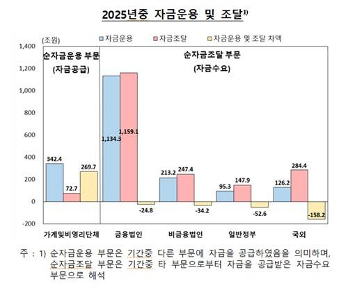 국외부문은 경상수지 흑자 규모 확대로 순자금조달 규모가 158조2천억원으로 전년(116조6천억원) 대비 확대된 것으로 나타났다.