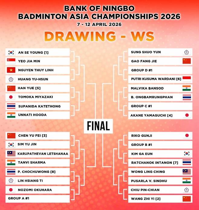 두 경기 연속 단 한 세트도 내주지 않은 채 안세영을 향해 가고 있는 왕즈이 앞에는 변수도 남아 있다. 대진표상 왕즈이는 8강에서 김가은(16위, 삼성생명)과 군지 리코(25위, 일본)의 승자와 맞붙는다.