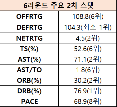 [창원 LG, 6라운드 주요 2차 스탯]
