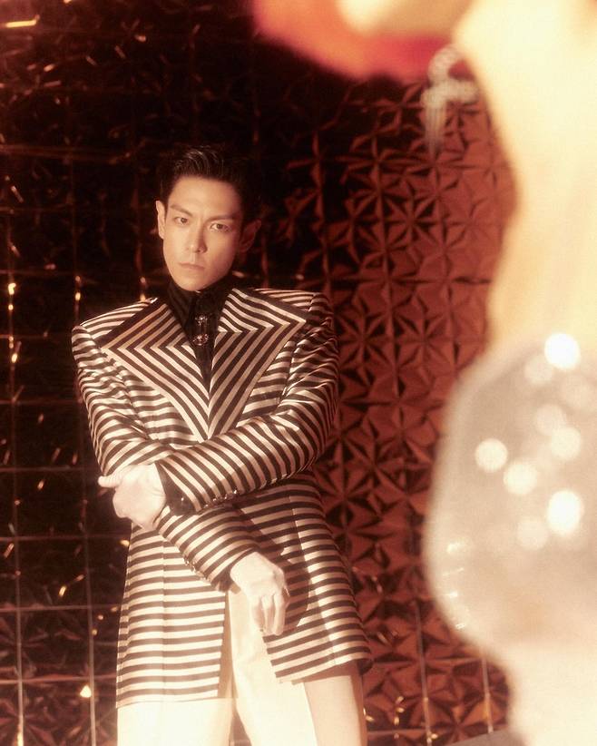 탑은 9일 자신의 SNS에 여러 장의 사진을 게재했다. 공개된 사진은 전날 베일을 벗은 탑의 첫 솔로 정규 앨범 ‘다중관점(ANOTHER DIMENSION)’의 더블 타이틀곡 ‘완전미쳤어! (Studio54)’ 뮤직비디오 현장 스틸이다.