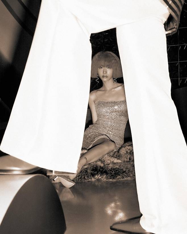 이번 뮤직비디오에서 가장 눈길을 끄는 것은 나나의 파격적인 변신이다. 나나는 선명한 레드 컬러의 뱅 헤어 스타일과 반짝이는 시퀸 드레스를 완벽하게 소화하며 독보적인 비주얼을 선보였다. 탑 역시 기하학적인 패턴의 화려한 슈트를 입고 특유의 강렬한 눈빛으로 나나를 바라보며 묘한 긴장감을 형성했다.