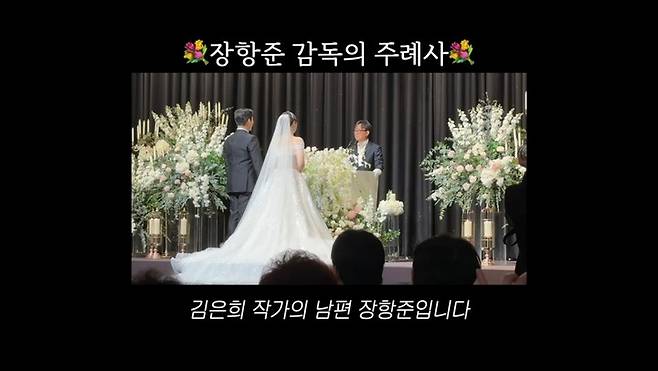실제 공개된 주례 장면에서도 장항준 감독 특유의 유쾌함과 따뜻함이 드러났다. 그는 "한국이 낳은 세계적인 거장 김은희 작가의 남편 장항준"이라고 자신을 소개하며 현장을 웃음으로 물들였다.