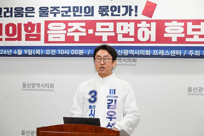 조국혁신당 울산시당은 이날 시의회 프레스센터에서 기자회견을 열고 "6·3 지방선거는 울산의 미래를 결정하는 중요한 선거이지만 국민의힘 울산시당 공천관리위원회는 다시 한 번 음주운전자에게 울산시의 운전대를 맡겼다"라고 지적했다.
