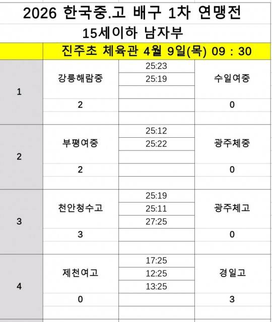 한편 18세이하 여자부 A조 예선에서는 천안청수고가 광주체고를 세트스코어 3-0(25-19, 25-11, 27-25)으로 꺾고 2연승을 기록, 조 1위로 4강 진출에 성공했다.