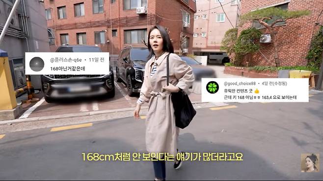 단화를 신고 신나게 뛰는 한가인의 풀샷을 찍던 제작진은 "어제 콘텐츠 나가고 '168cm처럼 안 보인다'는 얘기가 많더라"라고 밝혔다. 한가인의 다이어트 영상에서 키가 168cm이라는 사실이 공개됐는데, 이에 놀란 팬들이 많던 것.