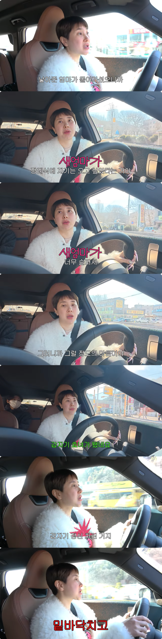 서인영은 새엄마가 "장례식이 자기는 오고 싶었다는 거야. 너무 슬퍼서. 그러니까 그럴 정도의 마음이야"라고 말하며, 친어머니의 마지막 길까지 진심으로 슬퍼해 준 새어머니의 깊은 정에 감사함을 전했다.