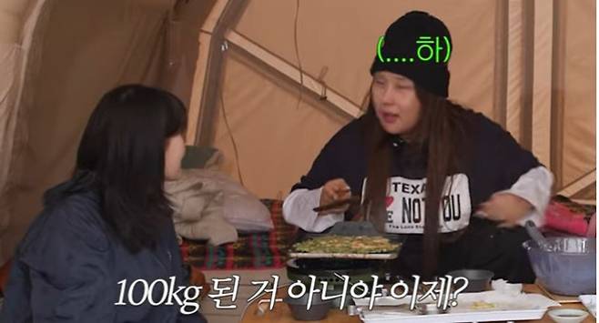 영상에선 한혜진이 풍자, 엄지윤과 캠핑에 나선 모습이 공개됐다. 한혜진과 풍자는 엄지윤이 홀쭉해졌다며 “왜 이렇게 살이 빠졌냐”라고 걱정했다. 이에 엄지윤은 한혜진, 풍자와 화천 산천어 축제를 갔을 당시를 언급하며 “일단 충격을 먹었다. ‘풍자, 엄지윤보다 날씬하다’라는 기사가 났더라. 그것 때문에 다이어트를 해야겠다고 생각을 하고 있었는데 장염에 걸렸다”라며 장염 때문에 자연스럽게 다이어트를 하게 됐음을 털어놨다.