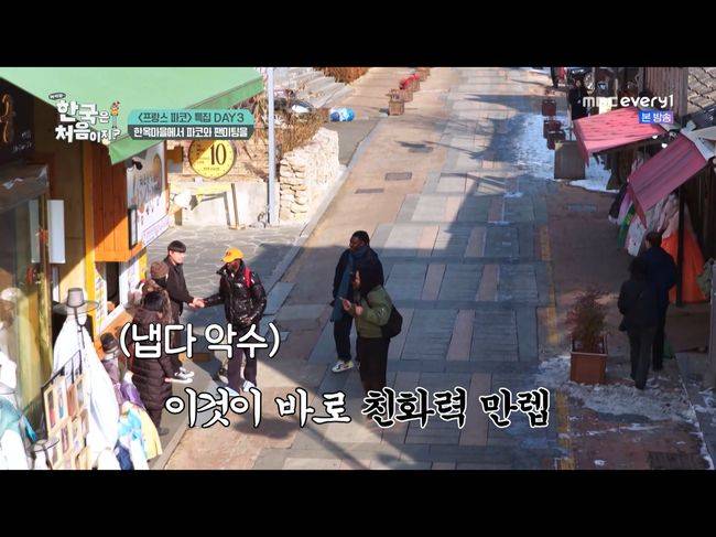 9일 방영한 MBC every1 예능 ‘어서와 한국은 처음이지’에서는 한정식 풀 코스를 즐긴 파코, 자밀, 맥스는 전주 한옥 마을 투어에 나섰다. 그러자마자 파코를 본 시민들이 당장 생겼다. 시민들은 “프랑스인 파코!”, “파코 왜 이렇게 잘생겼어?”라며 칭찬을 하더니 추운 날씨를 걱정하며 쥐고 있던 핫팩을 파코의 손에 쥐어주었다.