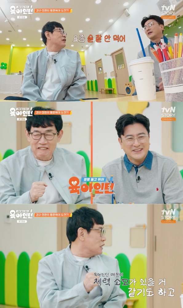 9일 방송된 tvN STORY 예능 '육아인턴' 1회에서는 육아 경험이 없는 이경규와 안정환이 본격적인 육아 도전에 앞서 교육을 받는 모습이 그려졌다.