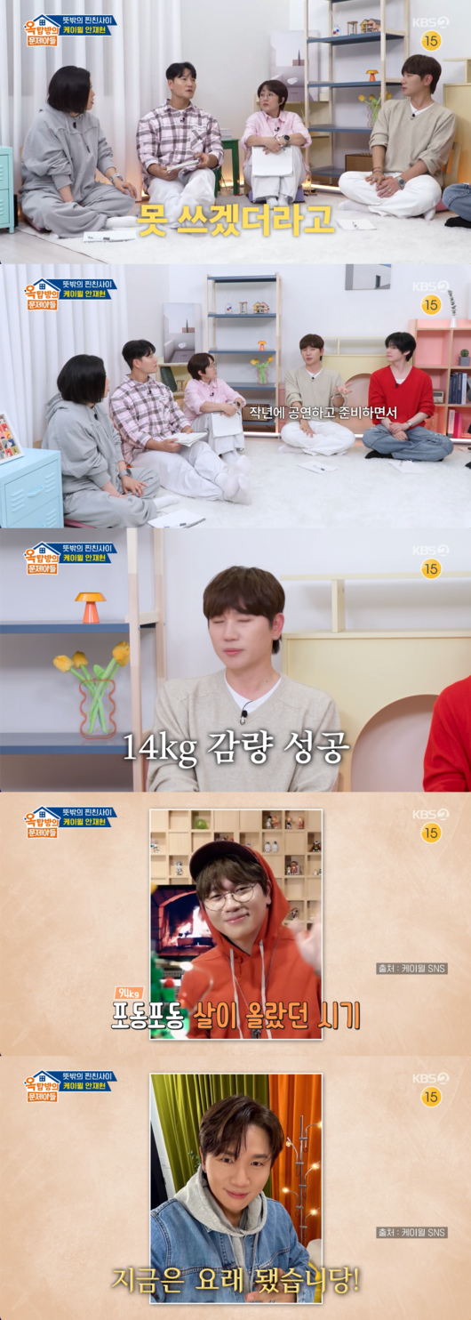 '옥탑방의 문제아들' 가수 케이윌이 혹독한 다이어트로 완성한 슬림해진 비주얼을 뽐냈다.