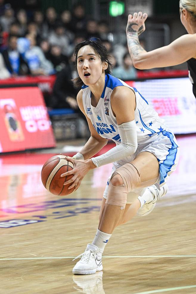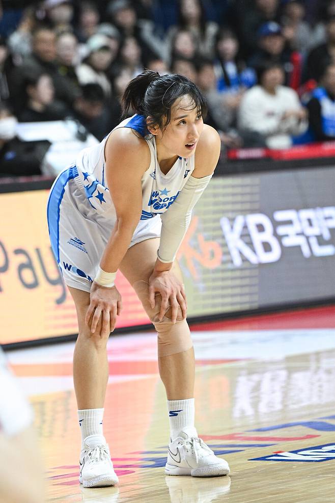 김단비가 수비 진영에서 볼을 잡았다. 볼을 천천히 운반했다. 김예진의 스크린을 또 한 번 받았다. 김정은과 매치업된 후, 왼쪽에서 오른쪽으로 드리블 방향을 바꿨다. 김정은을 따돌린 후, 오른손 레이업. 2024년 1월 27일(vs 인천 신한은행) 이후, 개인 통산 두 번째로 40점을 달성했다. ‘WKBL 역대 +40점을 수립한 국내 선수 중 최연장자’로 거듭났다.