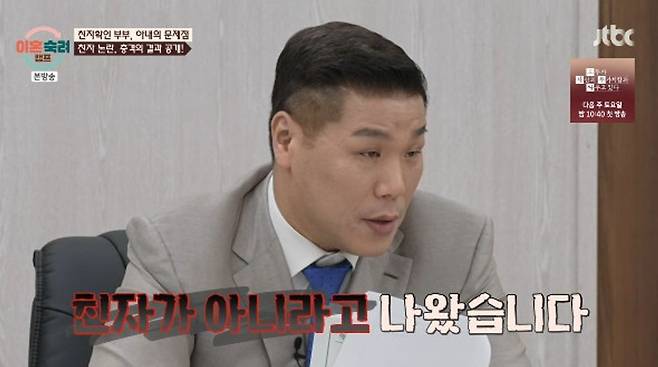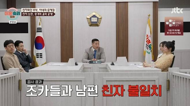 [TV리포트 = 하수나 기자] 동서와 불륜을 의심한 아내가 조카들과의 친자검사를 요구한 가운데 남편이 친자검사 결과를 공개하며 아내의 주장을 반박했다.
