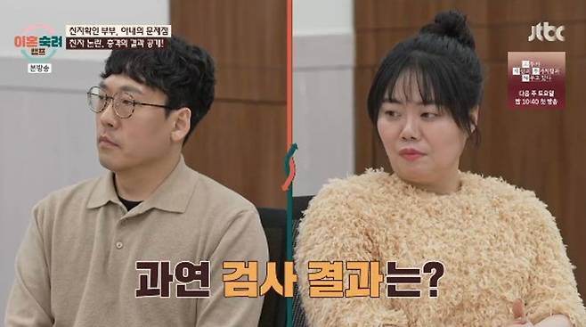 남편은 친자가 아니라고 나온 검사 결과에 대해 “명확한 게 아니라 단편만 보고 의심하고 몰아가는 게 힘들었다. 나의 누명과 가족들의 누명을 벗고 싶었다”라고 밝혔다. 그러나 담담한 표정의 아내는 이 부분에 대해서는 의심을 풀겠다면서도 친자검사 결과와 상관없이 내연관계 의심을 떨쳐내지 못하는 반응을 보였다.