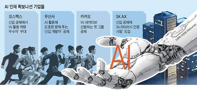 글로벌 화장품 ODM(제조자 개발 생산) 1위인 코스맥스그룹은 최근 신입 사원 공채를 진행하면서, ‘인공지능(AI) 활용 역량 우수자’ 우대 조항을 신설했다. 자기소개서에는 ‘AI 도구를 활용해 본인의 한계를 보완하거나 효율을 높인 경험’을 적으라는 문항도 추가했다. 회사 관계자는 “치열한 내부 논의 끝에 올해 공채를 진행하기로 한 결정적 이유는 결국 AI 인재를 선제적으로 확보해야 한다는 절박함 때문”이라고 말했다.