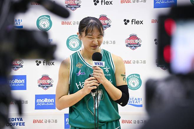 하나은행은 9일 부천체육관에서 열린 BNK금융 2025-2026 여자프로농구 플레이오프 1차전 홈경기에서 삼성생명을 61-56으로 꺾었다.