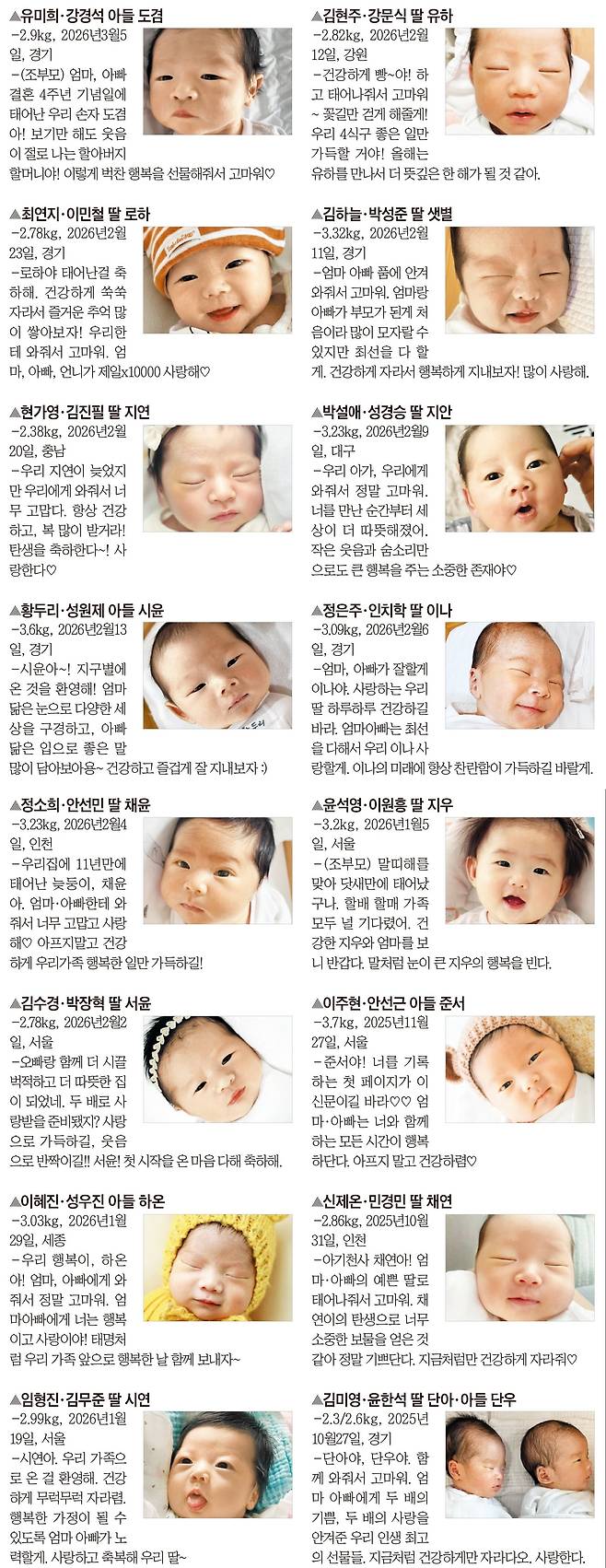 온 가족에게 기쁨을 안겨 준 아기의 탄생을 알려주세요. 홈페이지 주소 입력창에 아가야안녕.com이라고 입력하면 됩니다. 매일유업 육아 정보 사이트 매일아이(maeili.com)를 통해서도 접속할 수 있습니다. 추첨을 통해 출산 소식과 사진이 지면에 실린 가족에게는 ①케이크 구매권 ②엄마와 아이를 위한 매일두 포인트 3만원 ③출산 소식을 생일 날짜 본지 1면에 담은 PDF 파일 ④조선일보 1개월 무료 구독권을 드립니다. 당첨자 중 한 가족을 선정하여 해당 지면을 고급 프레임에 담아 제공하는 조선일보 리프린트도 제작해 드립니다. 홈페이지에서는 균형 영양식 메디웰 2만원 할인 혜택도 드리고 있습니다.