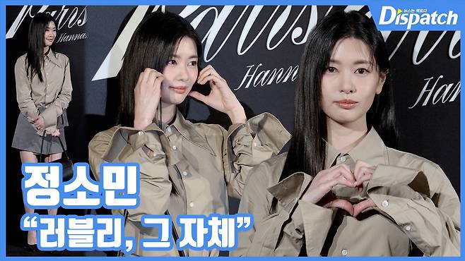 이날 정소민은 카키컬러 셔츠와 그레이 미니스커트로 멋을 냈다. 사랑스러운 매력이 돋보였다.