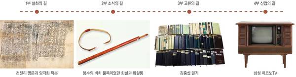 전시는 시간의 흐름에 따라 △'설화의 길' △'소식의 길' △'교류의 길' △'산업의 길' 등 4부로 구성됐다.