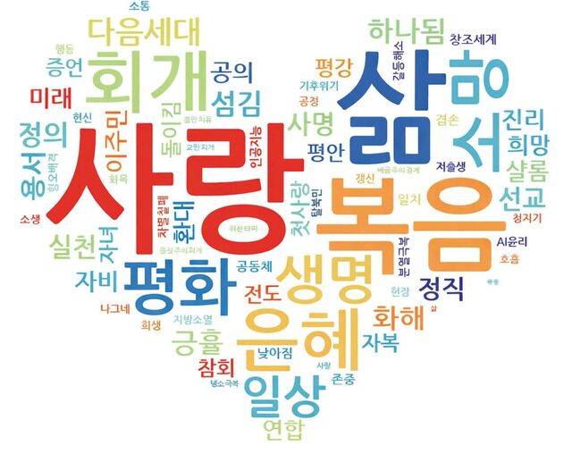 가장 많이 등장한 핵심 가치는 사랑이었다(그래픽 참조). 사랑은 총 143회 언급됐다. 이어 삶 118회, 복음 105회, 회개 99회, 소망 94회, 평화 86회 순이었다. 눈에 띄는 것은 회개의 쓰임새다. 사랑 없음에 대한 자책과 방향 전환의 열망이 회개에 담겼다.