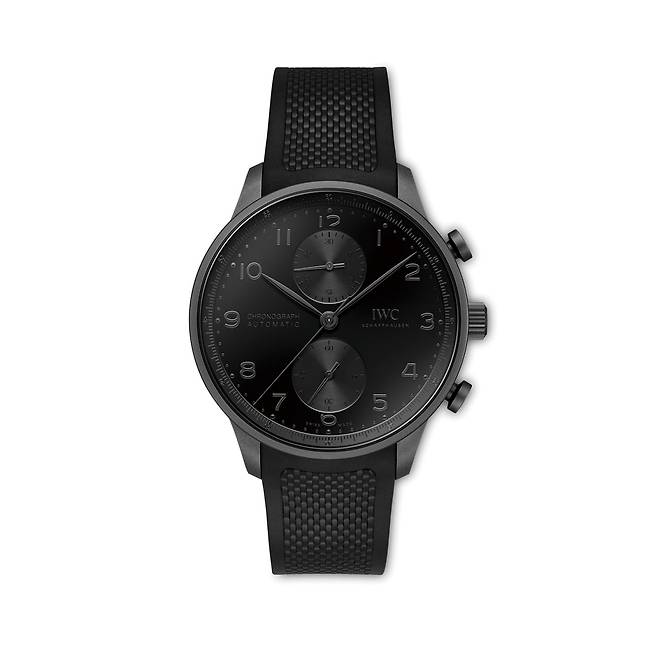IWC 샤프하우젠, 포르투기저 크로노그래프 세라타늄® | 포르투기저 크로노그래프에 IWC가 자체 개발한 세라타늄® 소재를 처음으로 적용했다. 블랙 다이얼은 아라비아 숫자 아플리케, 인덱스, 4분의 1초 눈금 모두 블랙으로 처리해 미묘한 입체감을 더한다. 블랙 핸즈와 블랙 아플리케, 스퀘어 패턴의 블랙 러버 스트랩에 세라타늄® 핀 버클을 장착해 시계 전체의 통일감을 완성한다. 케이스 지름은 41mm, IWC 자체 제작 69355 칼리버를 탑재해 1500점 한정 출시된다.