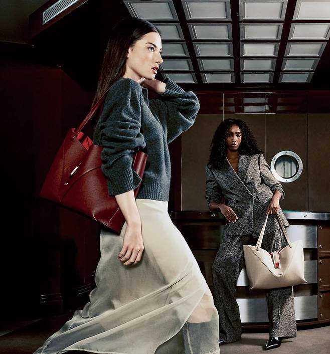 에스.티.듀퐁, 빅토리아 토트백 | 하우스의 역사적 고객이었던 빅토리아 여왕의 타협하지 않는 당당한 기품에서 영감을 받아 탄생한 ‘빅토리아 토트백’은 에스.티.듀퐁의 상징인 트라이앵글 로고를 바탕으로 한 그래픽적이고 입체적인 실루엣이 돋보인다. 잠금 장치는 메종의 아이코닉 라이터에서 차용한 미니 파이어-X 기요셰 패턴과 다이아몬드 헤드 인그레이빙을 적용해 정교한 금속 세공 기술의 정수를 보여준다. 14인치 노트북 전용 칸과 탈착식 파우치를 구성했으며, 내용물에 따라 위치가 조절되는 마그네틱 탭을 적용해 어떤 상황에서도 날렵한 형태를 유지할 수 있다.