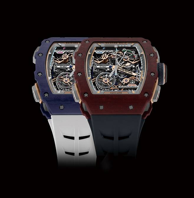 리차드 밀, RM 41-01 투르비용 축구 | 하이엔드 워치메이킹의 관점에서 축구 경기를 해석한 ‘RM 41-01 투르비용 축구’는 경기 시간을 넘어, 킥오프부터 종료 휘슬이 울릴 때까지 이어지는 경기의 흐름과 모든 득점 순간을 기계식 메커니즘으로 기록하도록 설계됐다. 이를 위해 5년에 걸친 개발 끝에 특허를 획득한 투르비용 플라이백 크로노그래프를 새롭게 탑재했다. 여기에 경기 시간 인디케이터와 기계식 골 카운터라는 두 가지 새로운 컴플리케이션을 결합해, 스포츠에 특화된 기능을 고도의 기계식 시계 기술로 구현했다. 레드 카민 바살트 TPT®와 다크 블루 쿼츠 TPT® 두 가지 버전으로 선보이며, 각 30점 한정 생산한다.