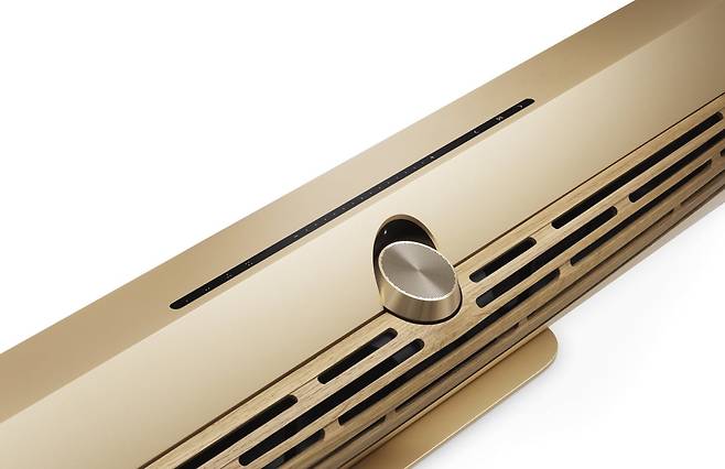 뱅앤올룹슨, 베오사운드 프리미어 골드 톤 | 브랜드의 100년 헤리티지를 담은 사운드바 ‘베오사운드 프리미어 골드 톤’을 새롭게 선보인다. 순수 알루미늄 소재의 베오사운드 프리미어는 입체적 실루엣과 정교한 3차원 공간 음향을 결합한 사운드바로, 특허 출원 기술인 와이드 스테이지 테크놀로지™를 탑재해 압도적인 사운드 몰입감을 선사한다. 부드러운 질감의 골드 메탈 마감은 럭셔리 무드를 자아내며, 벽걸이형과 테이블형으로 모두 활용 가능한 다기능 스탠드가 함께 제공돼 다양한 공간 연출이 가능하다. 교체 가능한 그레이 멜란지 패브릭 또는 오크 및 다크 오크 우드 커버 중 선택 가능하다.