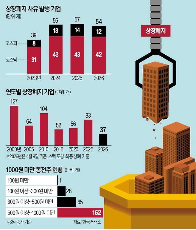 상장폐지 기업이 늘어날수록 투자자 손실이 커질 수 있다는 우려도 있지만, 증권가에선 ‘좀비기업’(한계기업)을 솎아낸다는 점에서 긍정적으로 평가한다. 한 증권사 리서치센터장은 “한국 증시가 부실기업을 자체적으로 걸러낼 자정작용을 갖추면 외국인 투자자 유입세가 강화될 것”이라고 했다.