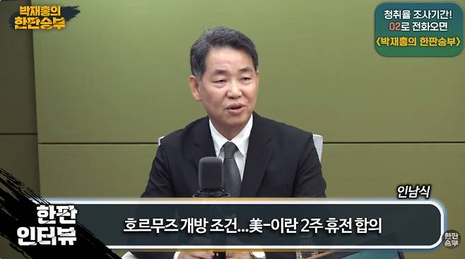 ◇ 박재홍> CBS 박재홍의 한판승부 2부 문을 열었습니다. 어제 미국과 이란이 2주간 휴전을 선언했습니다마는 오늘 호르무즈 해협 재봉쇄 소식이 올라오면서 여전히 중동은 불안한 상황입니다. 그래서 이 시간에는 국내 최고의 중동 전문가시지요. 국립외교원의 인남식 교수님과 함께 현재 상태를 진단해 보겠습니다. 교수님 어서 오십시오.