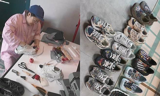 취미로 시작한 커스텀이 4년 차에 접어든 그는 그동안 만든 '김신영 에디션 운동화'를 공개하며 감탄을 자아낸다.