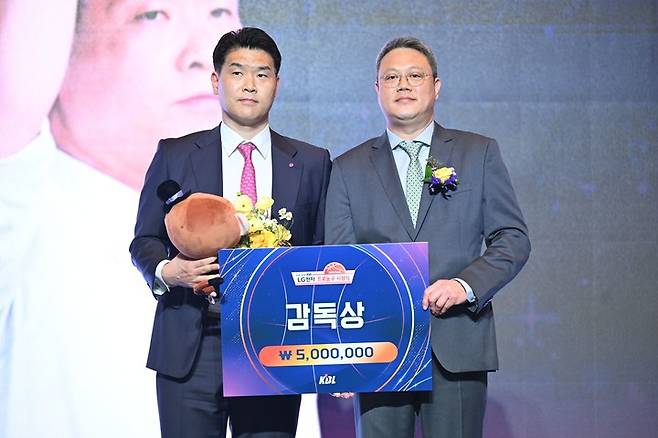 이어 "아시는 분들은 아시겠지만, 제가 걱정도 많고, 화도 많다. 소리도 많이 지른다. 그럼에도 코치들이 옆에서 잘 보필해 주고, 구단 프런트 식구들도 잘 도와줘서 이 상을 받을 수 있었던 것 같다"고 덧붙였다.