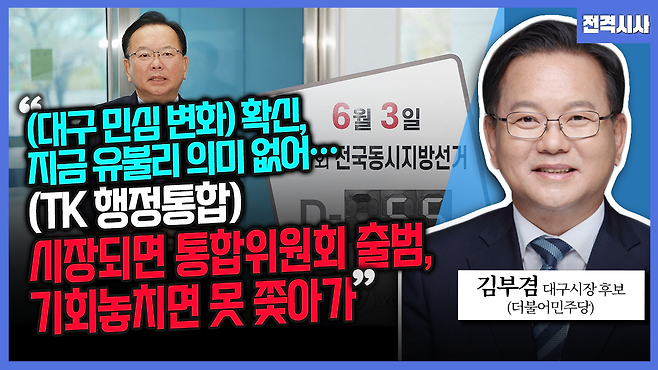[전격시사] 김부겸 더불어민주당 대구시장 후보 - “(대구 민심 변화) 확신, 지금 유불리 의미 없어…(TK 행정통합) 시장되면 통합위원회 출범, 기회놓치면 못 쫓아가”