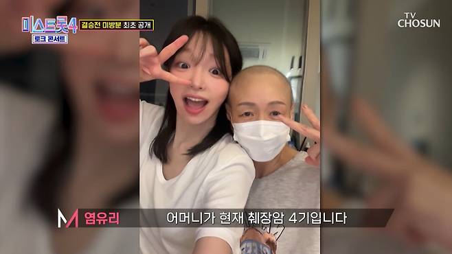 9일 방송된 TV조선 '미스트롯4 토크콘서트'에서는 '미스트롯4' 준결승전에서 7위를 기록해 TOP5 안에 들지 못하며 아쉽게 결승전행 티켓을 놓친 염유리의 미방분이 공개됐다. 이날 무대에는 췌장암 4기를 투병 중인 그의 어머니가 투병 중에 외출이 힘든 상황이었지만 딸의 무대를 직접 보기 위해 직접 보러 와 감동을 자아냈다. 화면에 잡힌 그의 어머니는 고된 병 치레로 인해 수척해 보이는 모습이었다.
