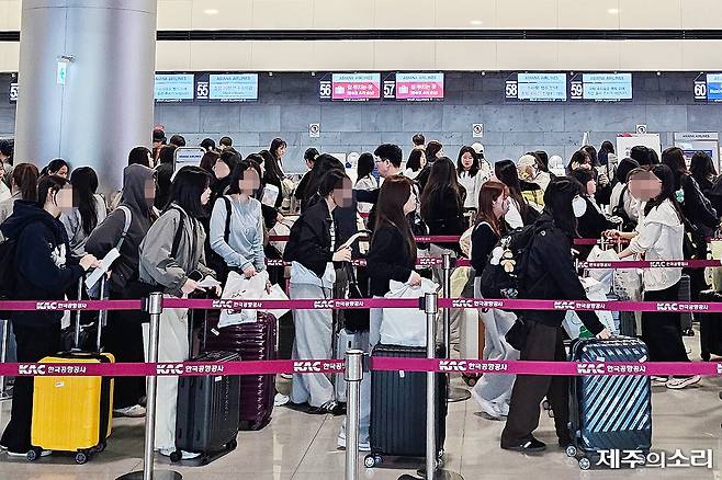 다만 봄철 수학여행단 등 단체 여행객이 먼저 좌석을 확보하면서 원하는 날짜와 시간대 항공권 예매는 여전히 어려운 상황이다.