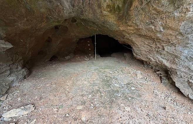 | ▲ 단양 구낭굴 구석기 유적지 전경 동굴 입구가 2개가 있다. |