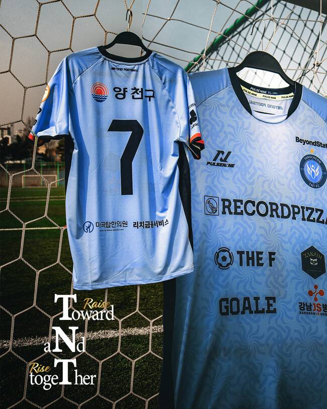 2026시즌 유니폼의 핵심 메시지인 'Raise Toward aNd Rise Together'는 양천TNT FC가 지향하는 방향성과 정체성을 가장 직관적으로 드러낸다.