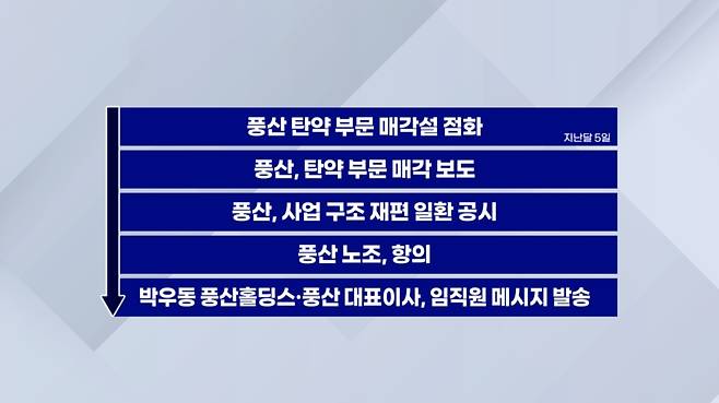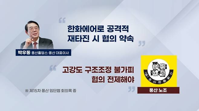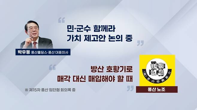 때마침 지난 7일 풍산 노사 간 임금·단체협약 일정이 잡혀 있었고, 노사가 인수를 놓고 정면으로 충돌하게 됐습니다.