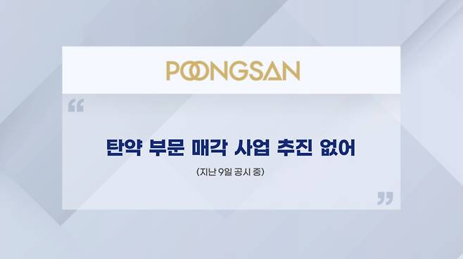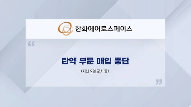 이어 풍산과 한화에어로스페이스가 각각 탄약 부문 매각과 매입을 중단하겠다고 공시했습니다.