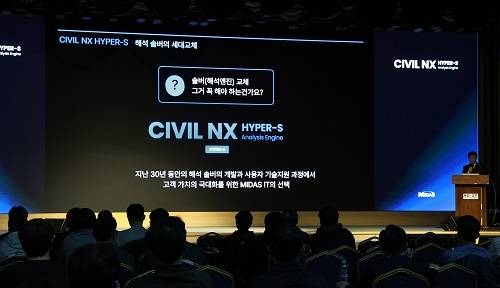 건설 엔지니어링 솔루션 분야 세계 1위 마이다스아이티가 4월 8일 서울 강남 한국과학기술회관에서 토목 구조 기술 세미나 ‘CIVIL NX SQUARE 2026’을 개최했다고 밝혔다. GS건설, 건화, 동명기술공단 등 전국 주요 시공사 및 설계사의 토목 구조 엔지니어 110여 명이 참석한 이번 세미나에서 MIDAS CIVIL NX의 신규 해석 엔진 ‘HYPER-S’가 최초 공개됐다.