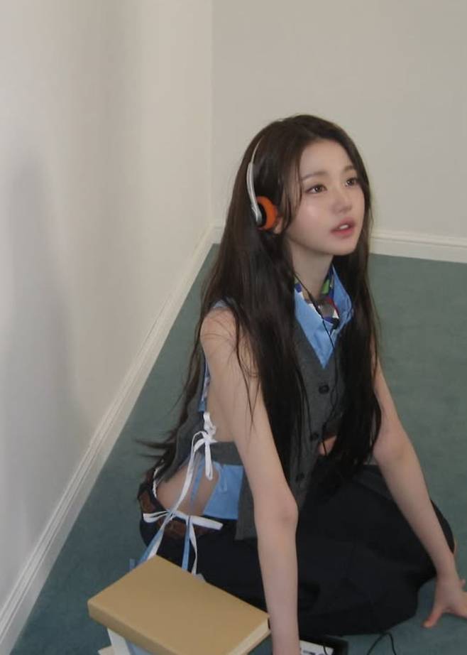 특히 장원영은 옆선이 깊게 트인 디자인의 베스트 스타일링으로 눈길을 끌었다. 셔츠 위에 레이어드한 그레이 니트 베스트는 옆라인이 과감하게 드러나는 디자인으로, 자연스럽게 사이드 라인이 강조되는 ‘사이드붑’ 패션을 연출했다. 여기에 벨트와 스카프, 헤드폰 등 개성 있는 아이템을 더해 독특한 레트로 감성을 완성했다.
